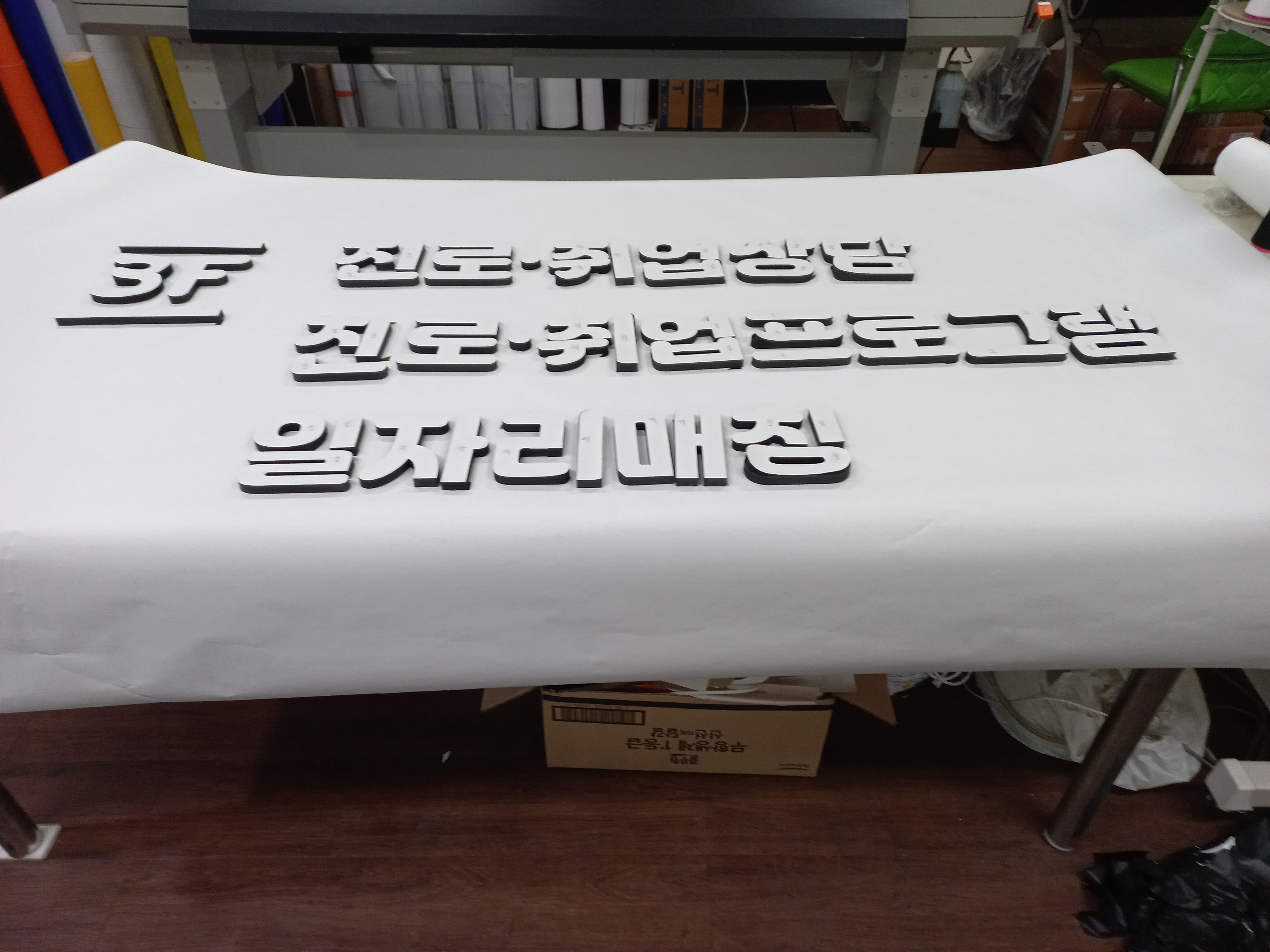 벽면이용 공간에는 알루미늄판에 고무로 입체만든 스카시문자 제작완료했습니다.
