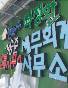 대전변호사간판2 대전돌출간판 주홍애드 서구 둔산동 전진주변호사 대전돌출간판 주홍애드 042) 522-3524 2024. 11. 25. 대전변호사세무사간판 주홍애드 서구 용문동 서승준변호사.최정환세무사 대전 용문동사거리에 위치한 변호사 사무실과 세무사 사무실 간판입니다.오래도 되고 건물이미지 와는 어울리지 않는 형광등용 판류형 간판이건물을 답답해보이게 하고 있지요?변호사님께서 저의말을 귀담아 들어주셔서 아예 떼어버리고 알루미늄으로 글자를 만들어건물의 답답함과 이미지를 바꾸기로 했답니다 건물 작업들어가기전에 상호글자 알루미늄으로 접고 카바로광학산PC카바접어서 만들어 놓구요 갤브판접어서 받침대 만들고 도안지 출력해서 상호글자 도안지 위에 얹어서자간및 배열 꼼꼼하게맞추었어요 기존 판류형 간판 탈착한 건물입니다. 건물이 환해졌어요 우와!! 상호글자 받침대에 부착작업 완료 했어요 두 개 업소거 같이 만들려다보니 시간이 걸리구요 판류형 간판 탈착한 자리에 정성스레 만든 간판 부착 완료 !! .. 2014. 8. 22. 이전 1 다음